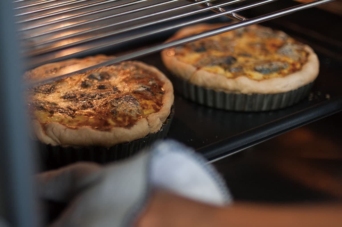 自家製野菜を一番美味しい時期に盛り込む。バターやチーズ、生クリームやベーコンなど、良質なものを惜しみなく使う。キッシュに入れるエビや帆立はゴロッと大きく、合わせる野菜は一種類だけ。それぞれが引き立て合い、型の中で料理として完成するように。タルトに入れる果物も、熟させ具合やカットする大きさはもちろん、皮ごと使う柑橘類やプラムは皮を下向きで詰めるか、上向きで詰めるかにまでこだわる。